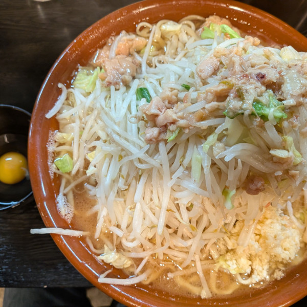 白楽(横浜市神奈川区六角橋2-10-1)からの移転となる。「仁鍛」@白楽を経て「ラーメン二郎」の野猿街道店や小金井街道店などで修行。二郎系のガッツリ系のラーメンを提供。