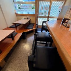 店内は和風で落ち着いた、今日現在下に棚のある厨房向きL字カウンター6席と4人掛け小上がり席が1卓、6人掛け小上がり席が1卓あり氷入りお水は出して頂きました(奥にお手洗いあり)。